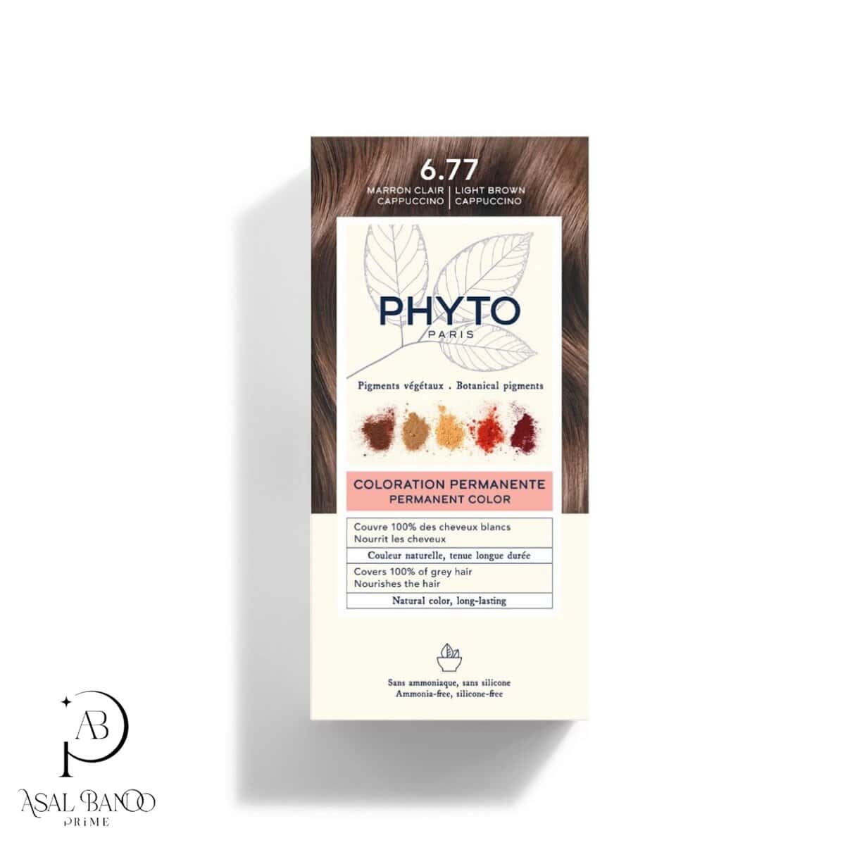 رنگ مو فیتو قهوه ای کاپوچینویی روشن 6.77 بدون آمونیاک حاوی غلظت بالایی از رنگدانهها و عصارههای گیاهی است که کمپانی فیتو با دو هدف رنگ آمیزی مو و مراقبت از سلامتی فیبرهای مو این محصول را تولید کرده است. هرکیت رنگ مو تا 74 درصد رنگدانههای گیاهی در آن به کار رفته است. غلظت بالای پیگمنت در این محصول باعث میشود رنگهای شدید، دائمی و عمیق با انعکاس و درخششی طبیعی و جذاب ایجاد کنند. در صورتی که با وجود رنگ کردن مو، از پوست سر و مو محافظت کرده و باعث تغذیه شدید و نرم شدن موها می شود.